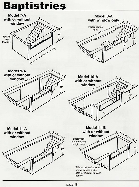 We can install new Baptistries at competitive prices. For a free consultation please call or stop by the store. (More information to be added to this page later.)
