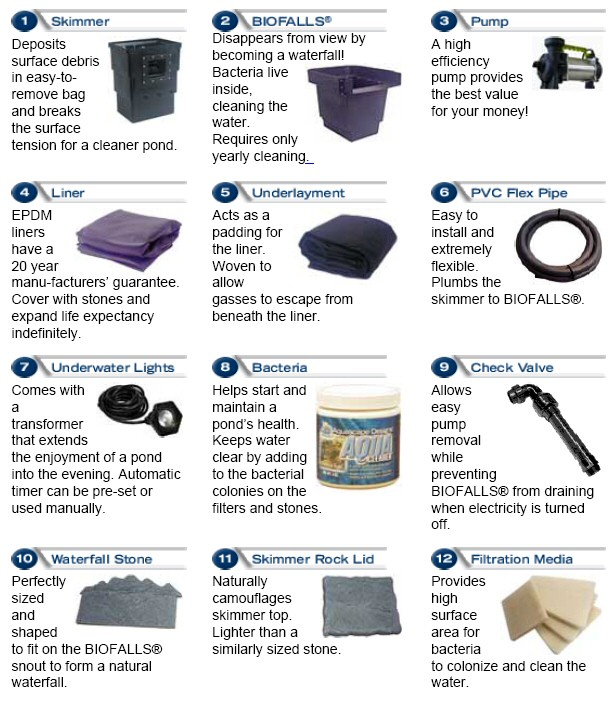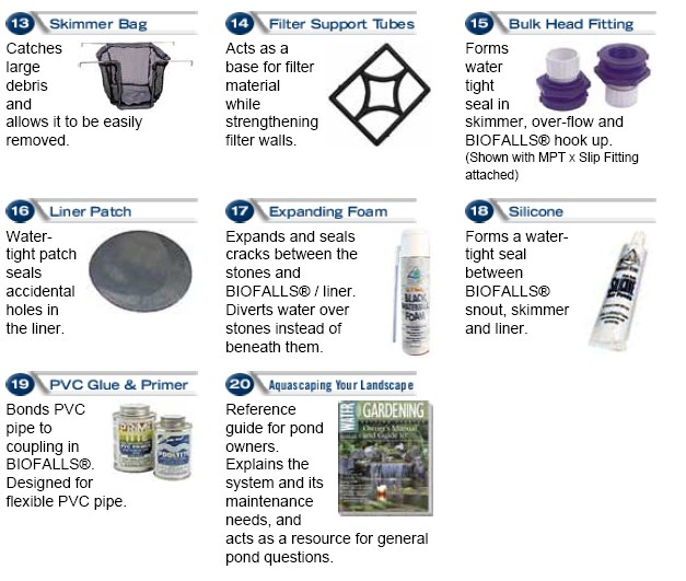 Follow the experts as they show you step-by-step how to put together the 20 kit components into a beautiful 11' x 16' pond! The beauty of these steps is that they will work for a pond of any size!